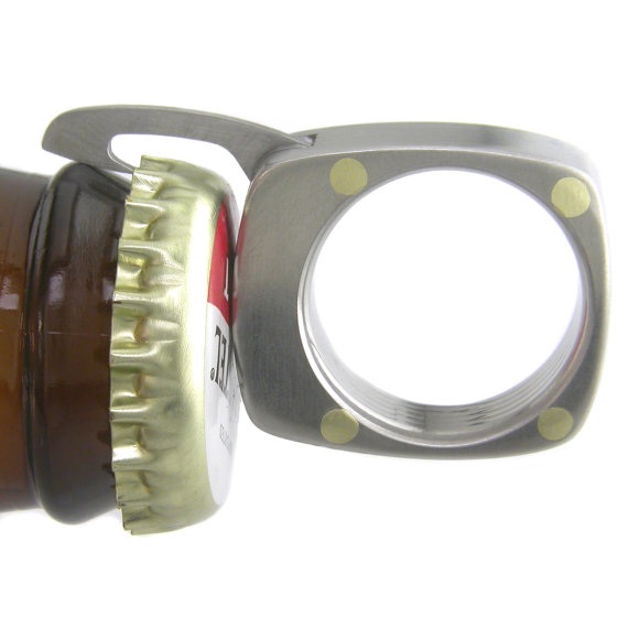 Den ultimata McGyver ringen för dig som inte vill bära en ring bara för utseendet. Nu kan du öppna ölen, kamma ögonbrynen och fila valfri sak med din allt i allo ring. Att den är gjord i Titanium höjer helt klart manlighetsfaktorn.